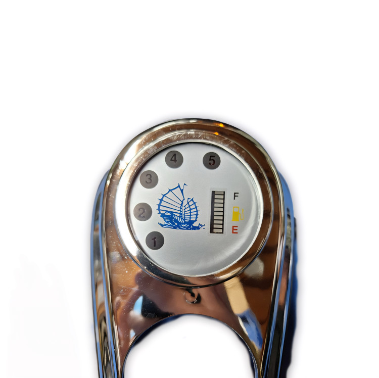این قطعه ترکیبی از آمپر بنزین دیجیتال و نمایشگر دنده (Gear Indicator) برای موتورسیکلتهای طرح هارلی است که روی قسمت بالای باک نصب میشود. بدنهی فلزی با روکش کروم براق، ظاهر کلاسیک و درخشان به موتور میدهد و در کنار آن، نمایش دقیق میزان سوخت و موقعیت دنده را فراهم میکند.